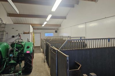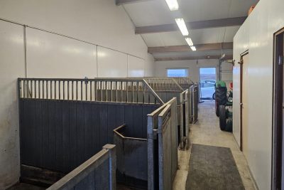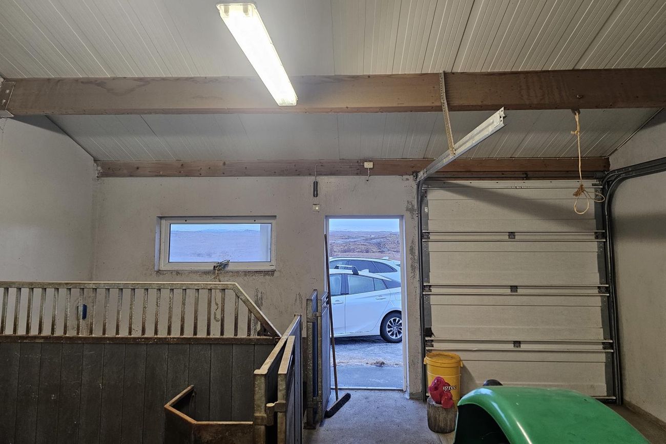 Í húsinu eru 5 tveggja hesta stíur, (lúga í gólfum til að ýta ofan í haughús), ásamt góðri aðstöðu til að taka inn heyrúllur með opinni hnakkageymslu, kaffistofu og snyrtingu. Hiti er í gólfi. Innréttingar eru plastpanell og járn. Allur frágangur er vandaður.