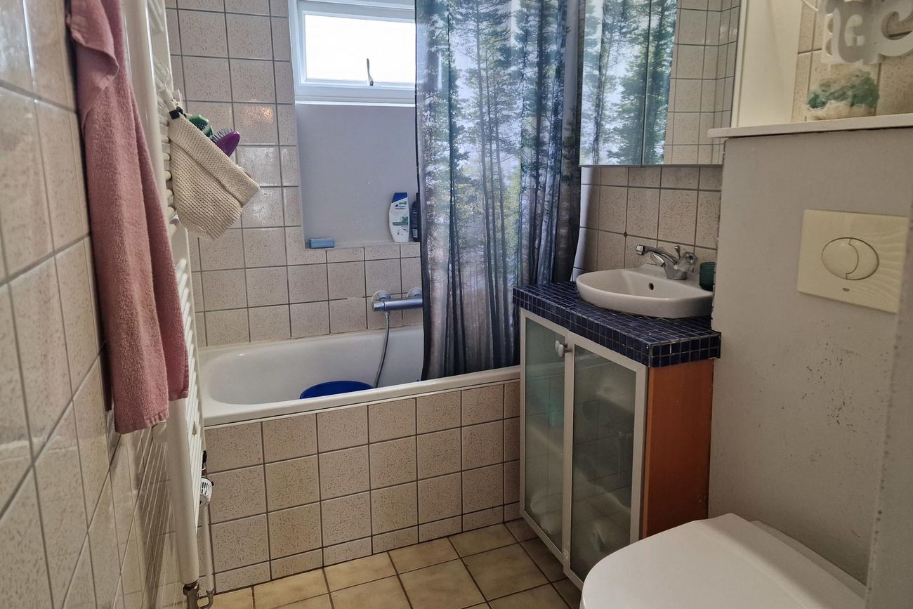 Baðherbergi: Flísalagt í hólf og gólf, skápur undir vaski og hillur. Vegghengt salerni, baðkar og handklæðaofn..