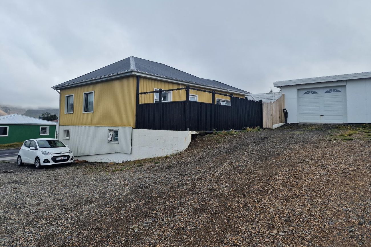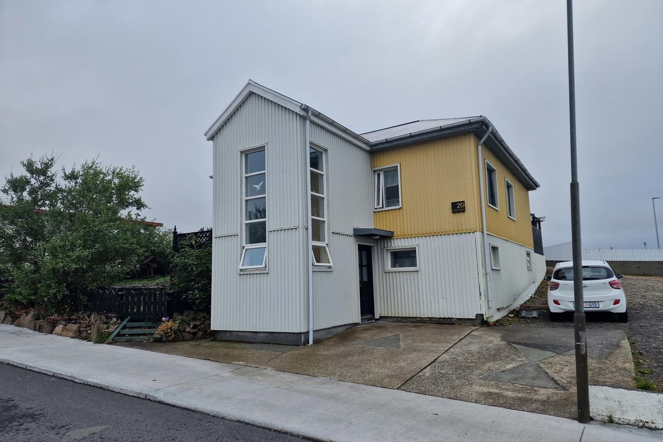 Eyrarvegur 20, 350 Grundarfirði. Einbýlishús á tveimur hæðum byggt 1955 með stakstæðum bílskúr byggður 2007.