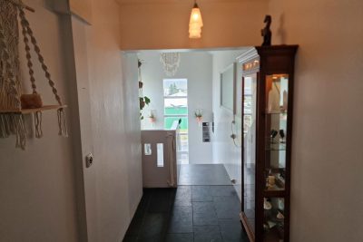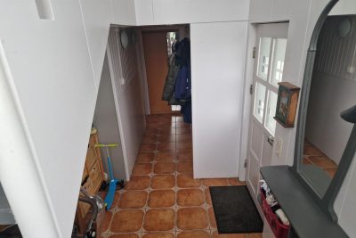 Forstofa og gangur: Flísalagt með gólfhita. Fatahengi og skápur.