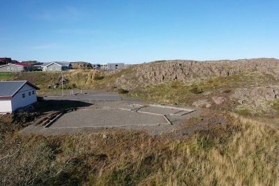 Á lóðinni eru eru steyptir sökklar af 244,3 fm einbýlishúsi á einni hæð en þar af er bílskúr 50 fm.