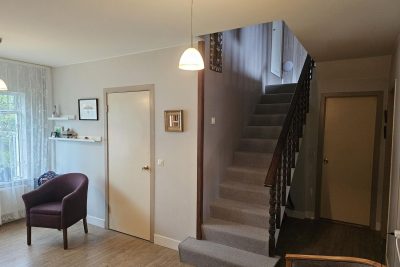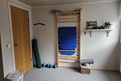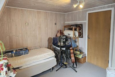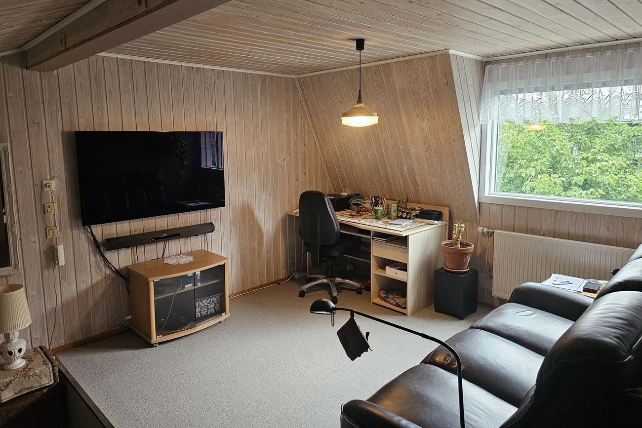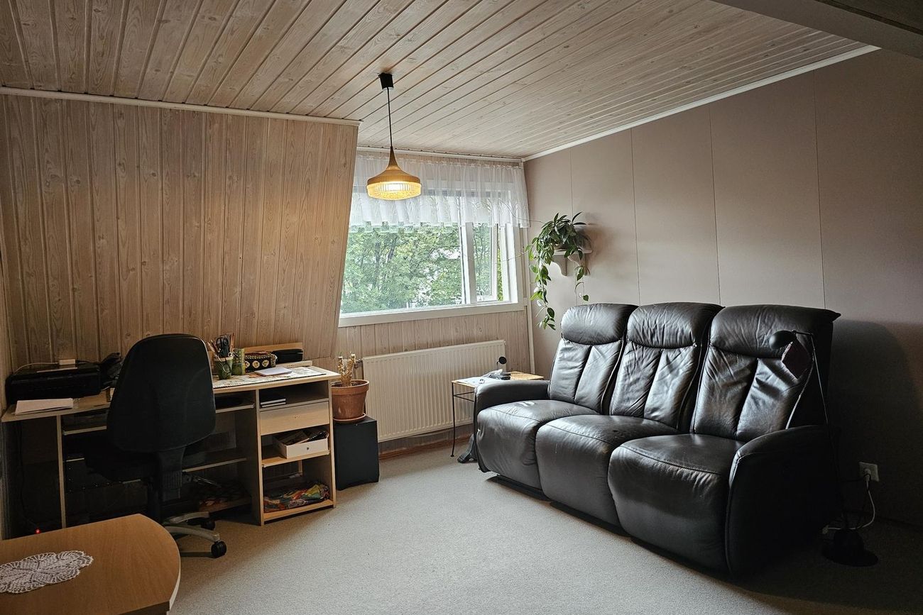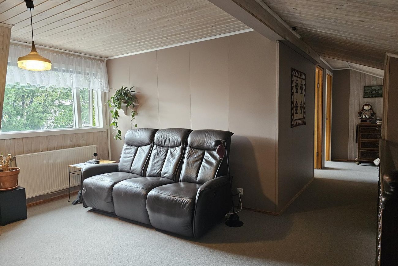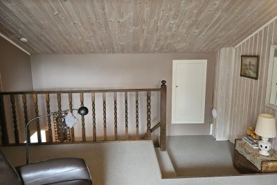 Sjónvarpshol á stigapalli teppalagt, auðvelt að stúka af og breyta í svefnherbergi