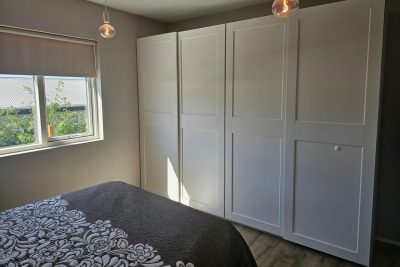 Svefnherbergi: Eru 4, parket á gólfum og rúmgóður fataskápur í hjónaherbergi.