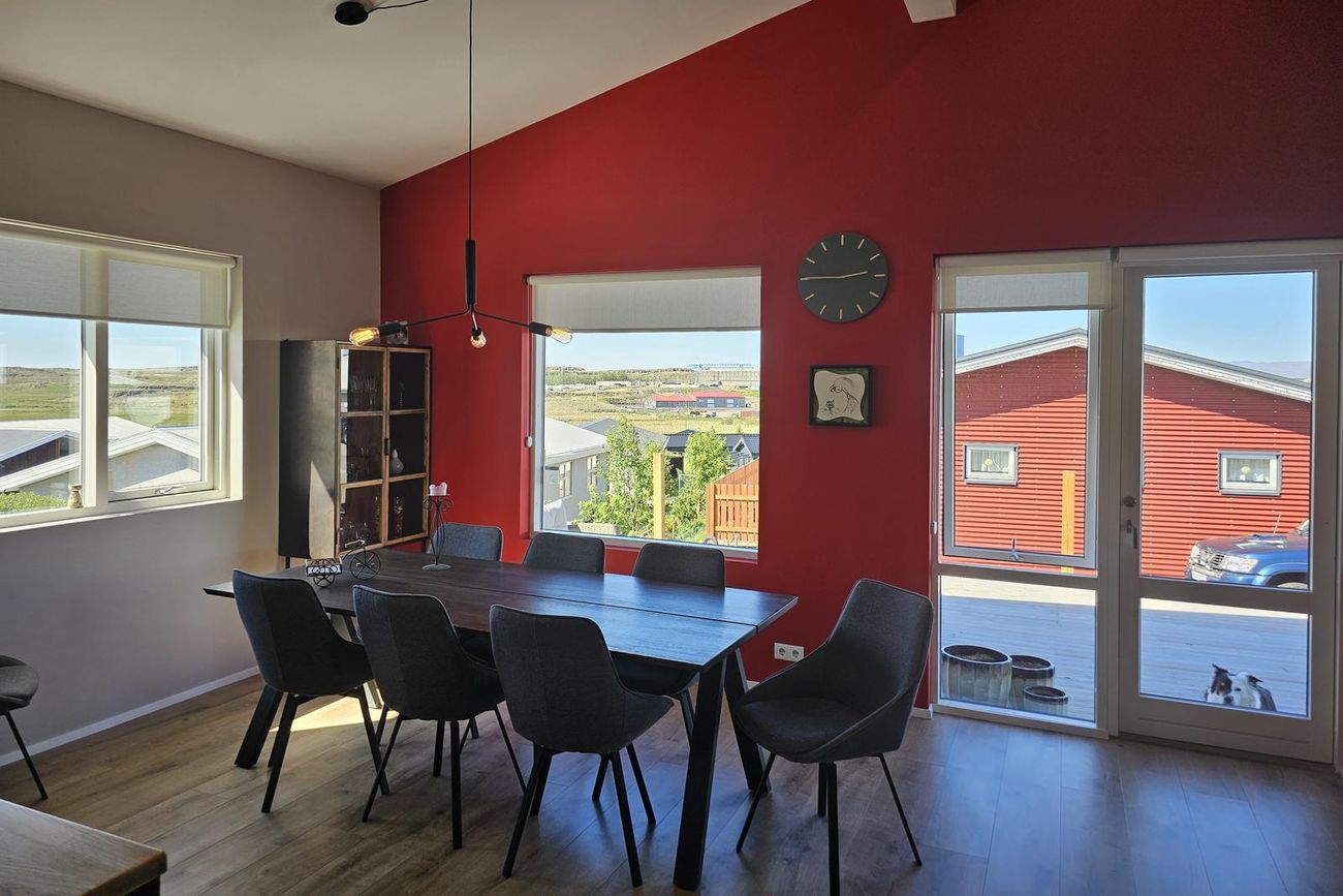 Gluggar og hurðir eru timbur/ál og allt ytra byrði því viðhaldslétt.