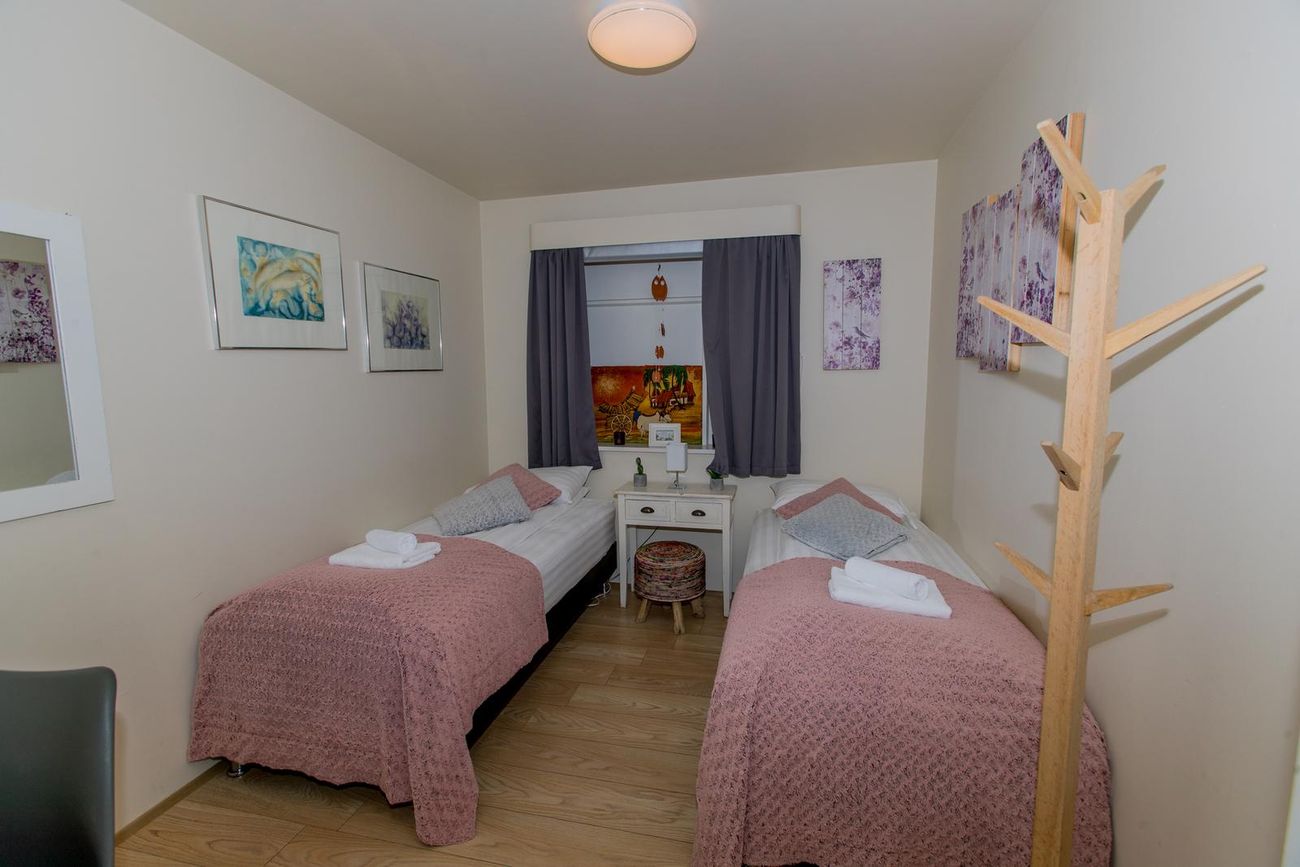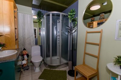 Hæðin er mikið uppgerð með parket er á gólfum utan þess að flísar eru á gólfi í baðherbergjum. Áföst hæðinni er viðbygging, garðhús, sem nýtt er sem lager og þar innaf er 1 herbergi og salerni.