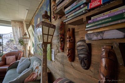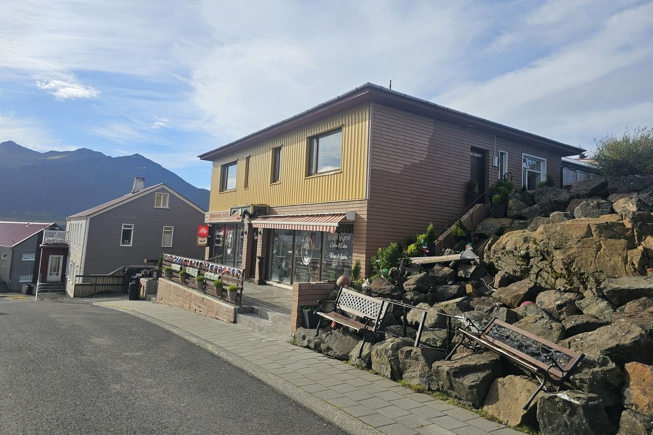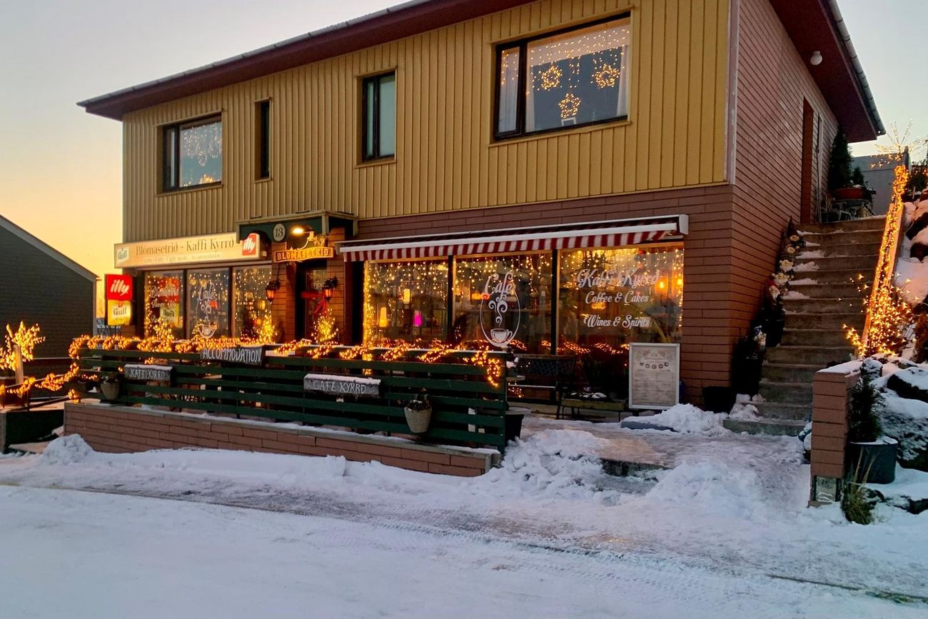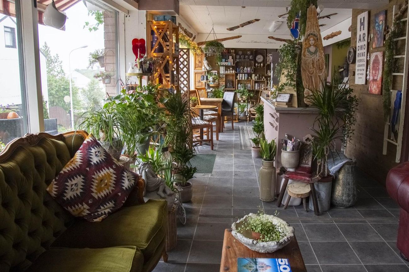 Hæðin er innréttuð sem kaffihús og skiptist í afgreiðslu með aðstöðu til sölu á varningi, seturými, eldhús, salerni og veitingasal. Inn af eldhúsi er síðan þvottahús. Úr veitingasal er síðan gengið út á rúmgóðan sólpall.