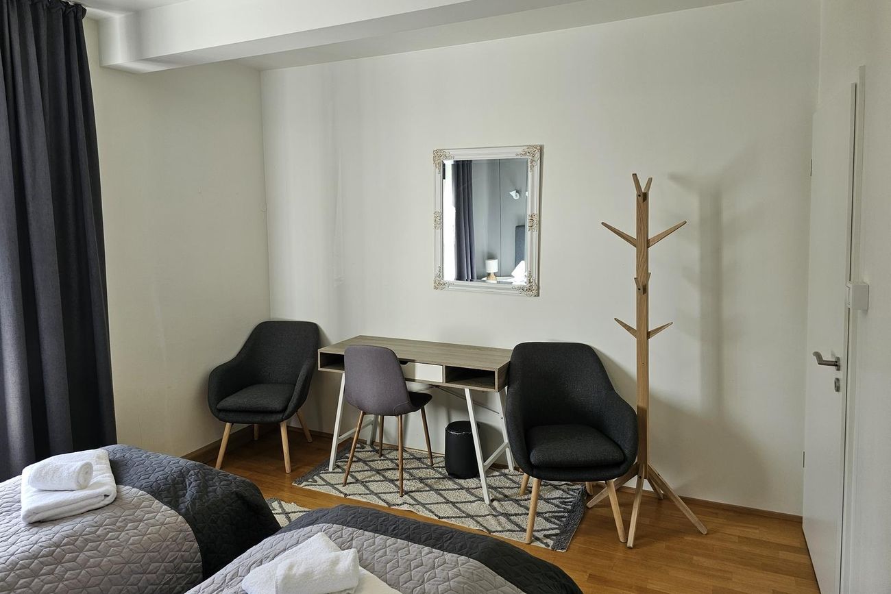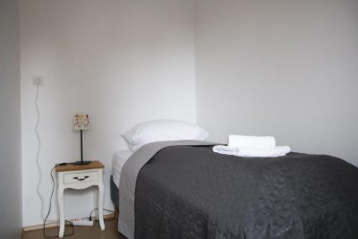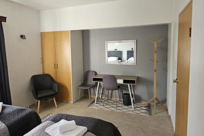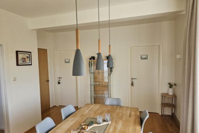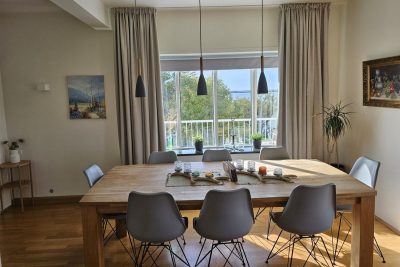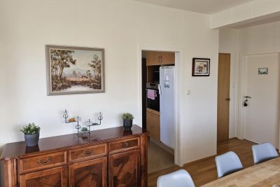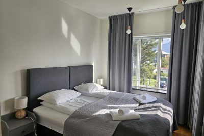 Stofa: Parketi á gólfi, mikið og fallegt útsýni. Hluta stofu hefur verið breytt í 2 svefnherbergi með léttum veggjum sem auðvelt er að fjarlægja og færa í fyrra horf.
