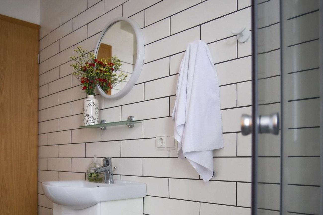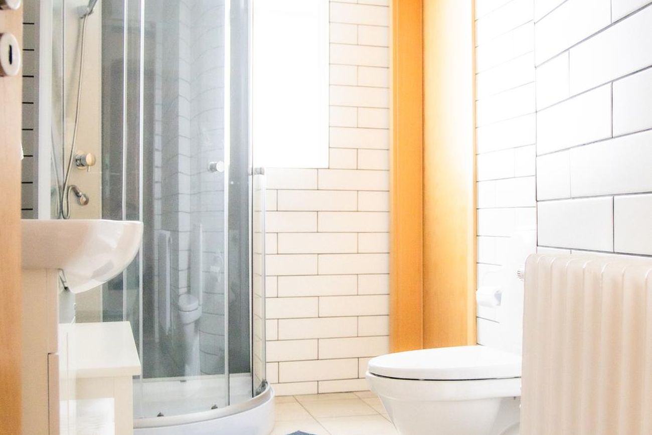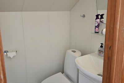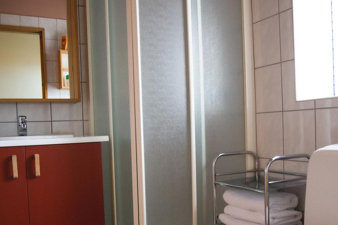 Baðherbergi 2: Flísalagt í hólf og gólf, sturtuklefi, salernigengið inn í þvottahús.