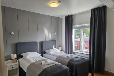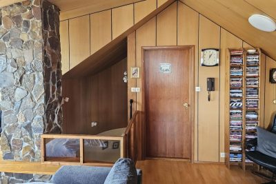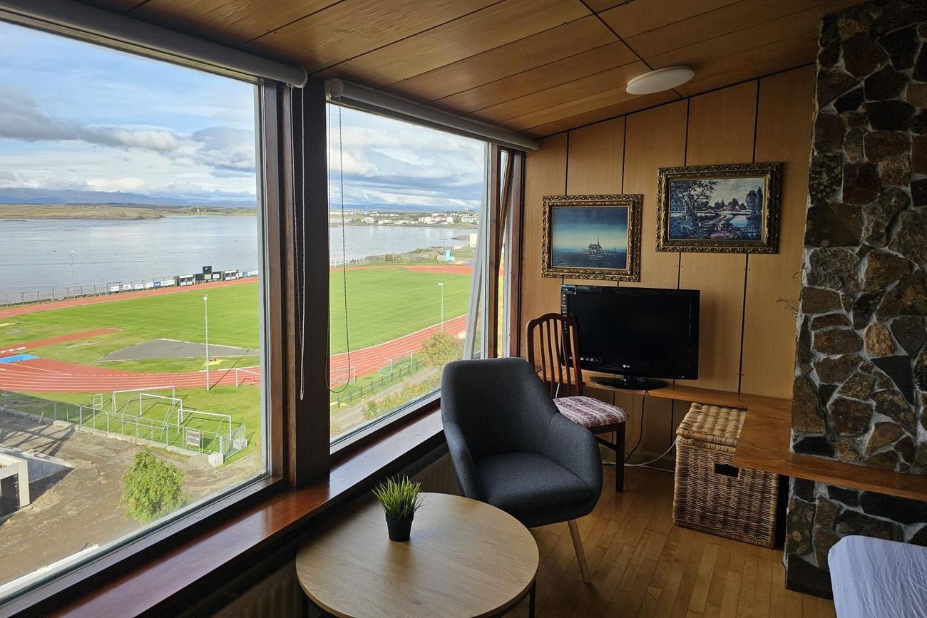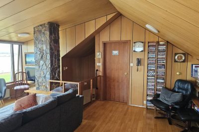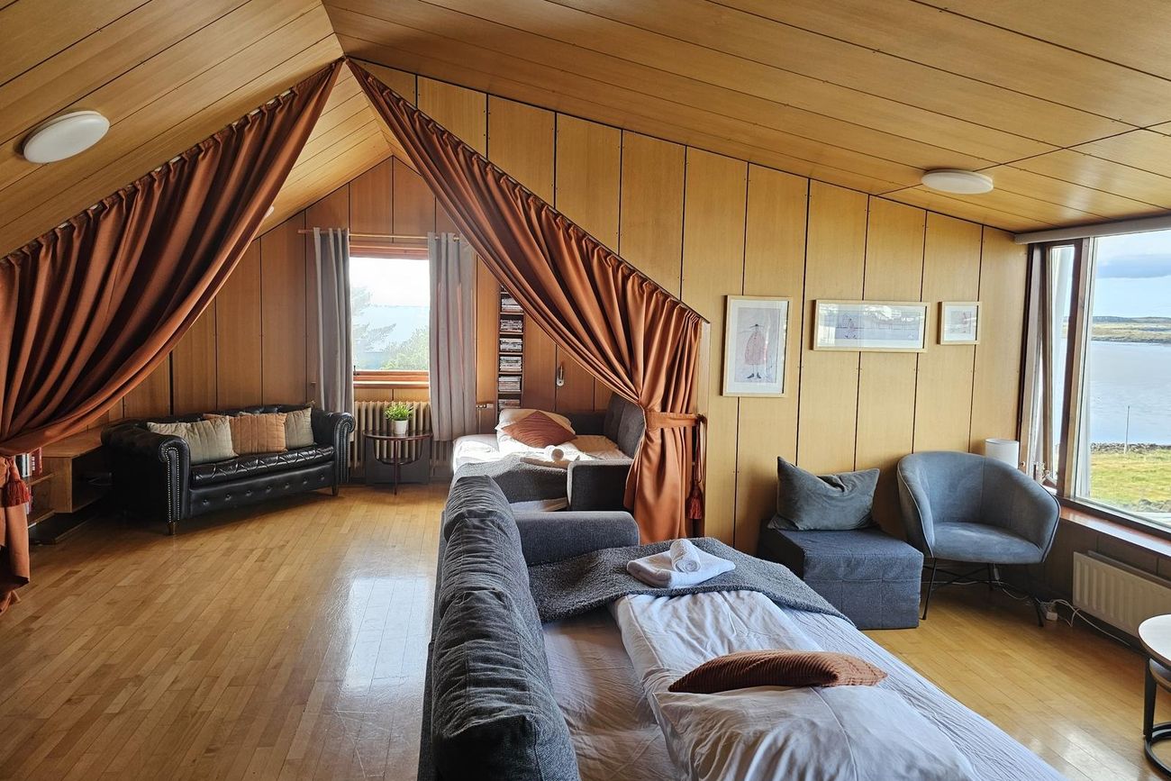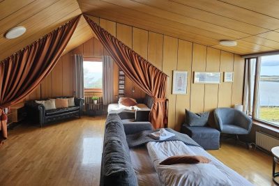 Setustofa í risi, viðarklædd með parketi á gólfi. Góðir útsýnisgluggar á tvo vegu.