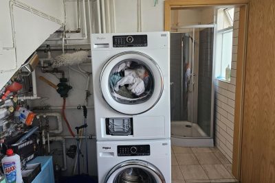 Þvottahús: Málað gólf, tvær afstúkaðar geymslur og útgengt á lóð.