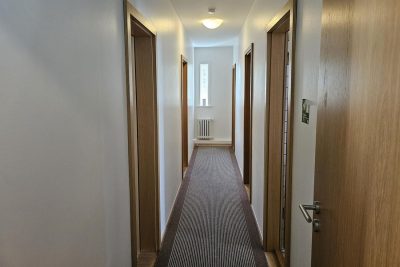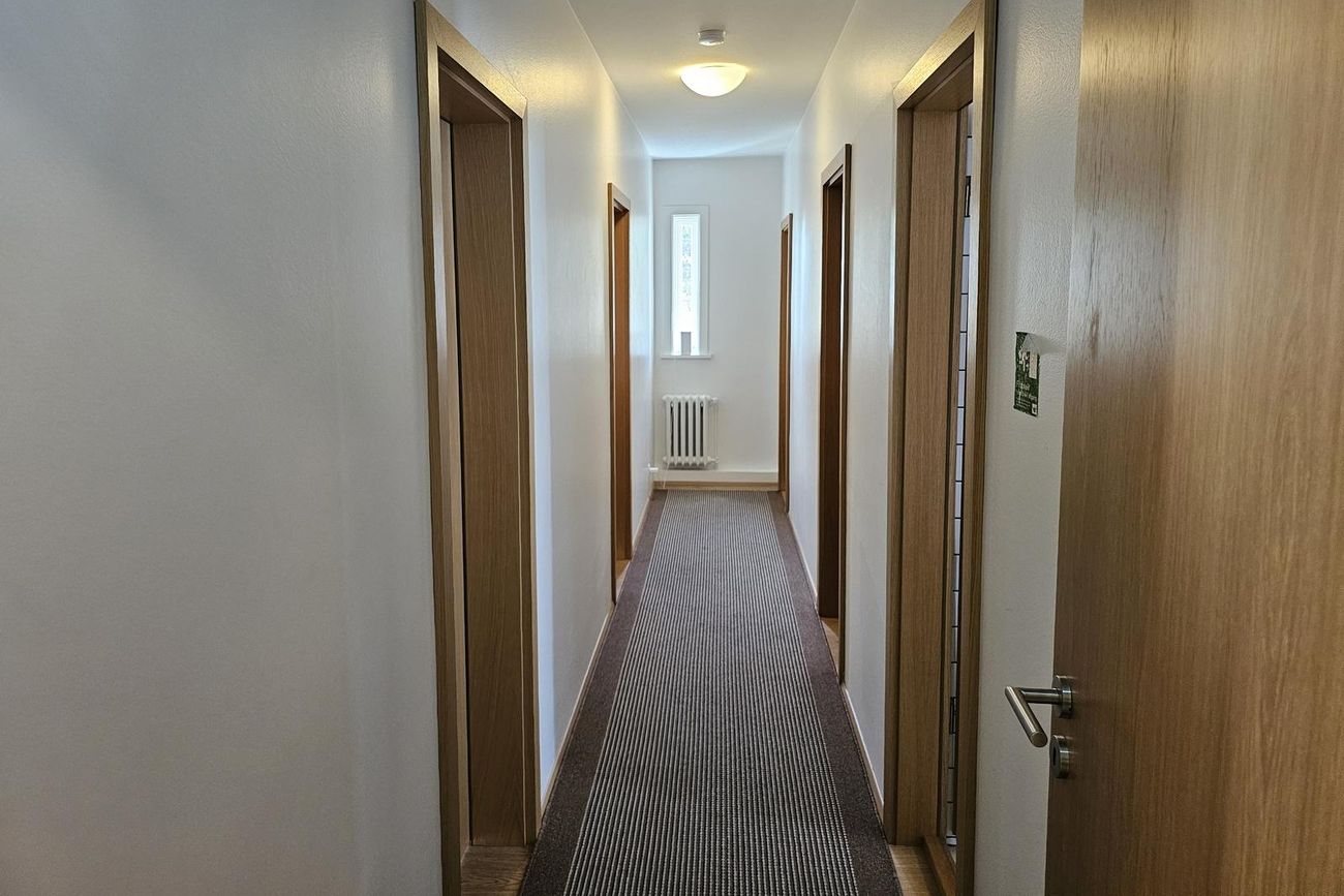 Gangur: Teppi á gólfi, dyr út á svalir.