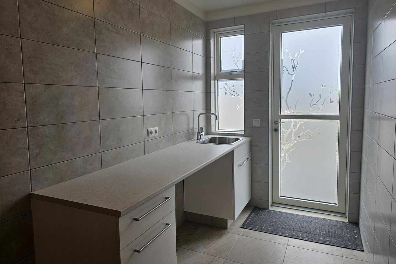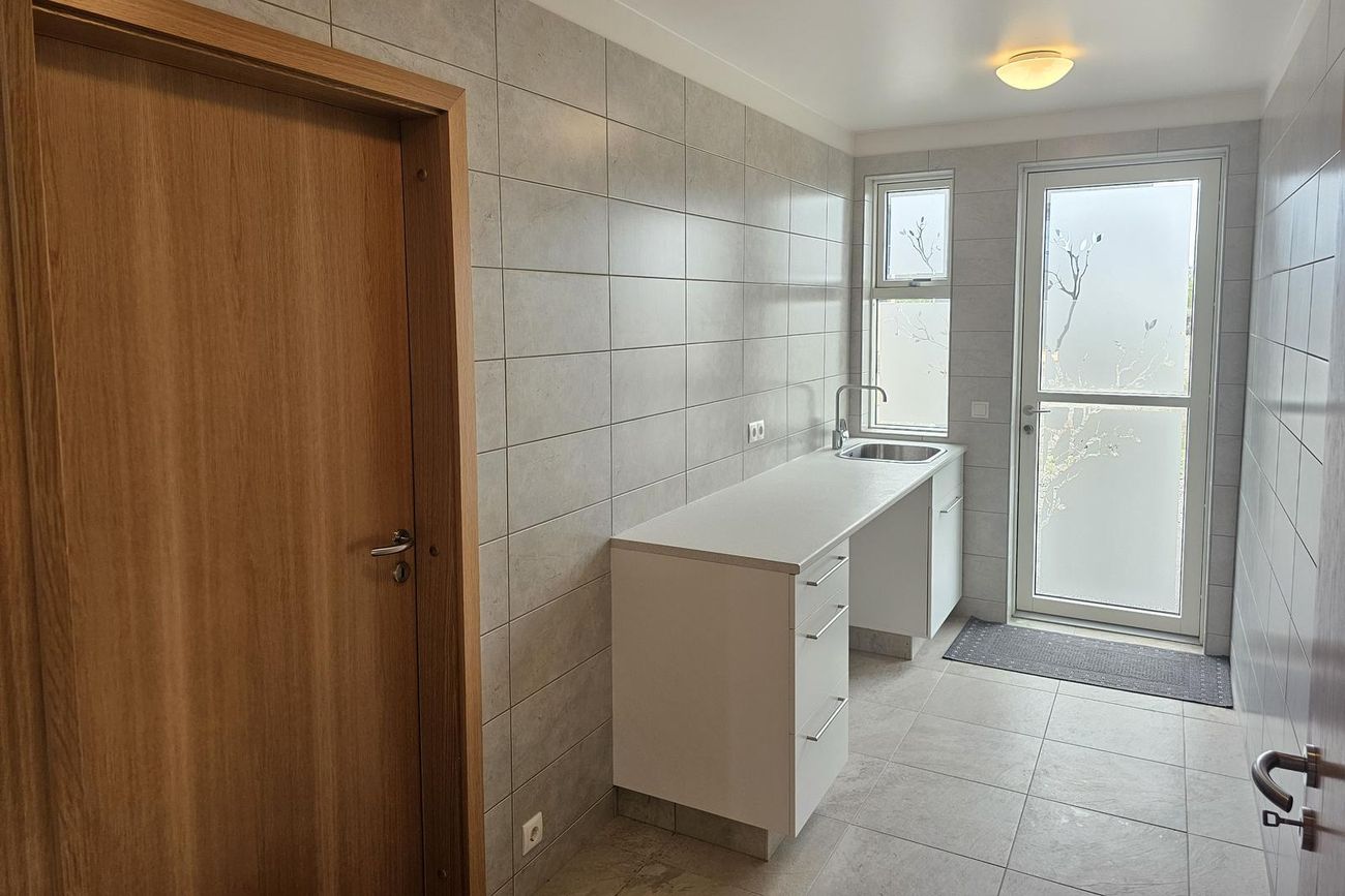 Þvottahús: Er flísalagt í hólf og gólf með góðri innréttingu. Úr þvottahúsi er innangengt í bílskúrinn og einnig út á baklóðina.