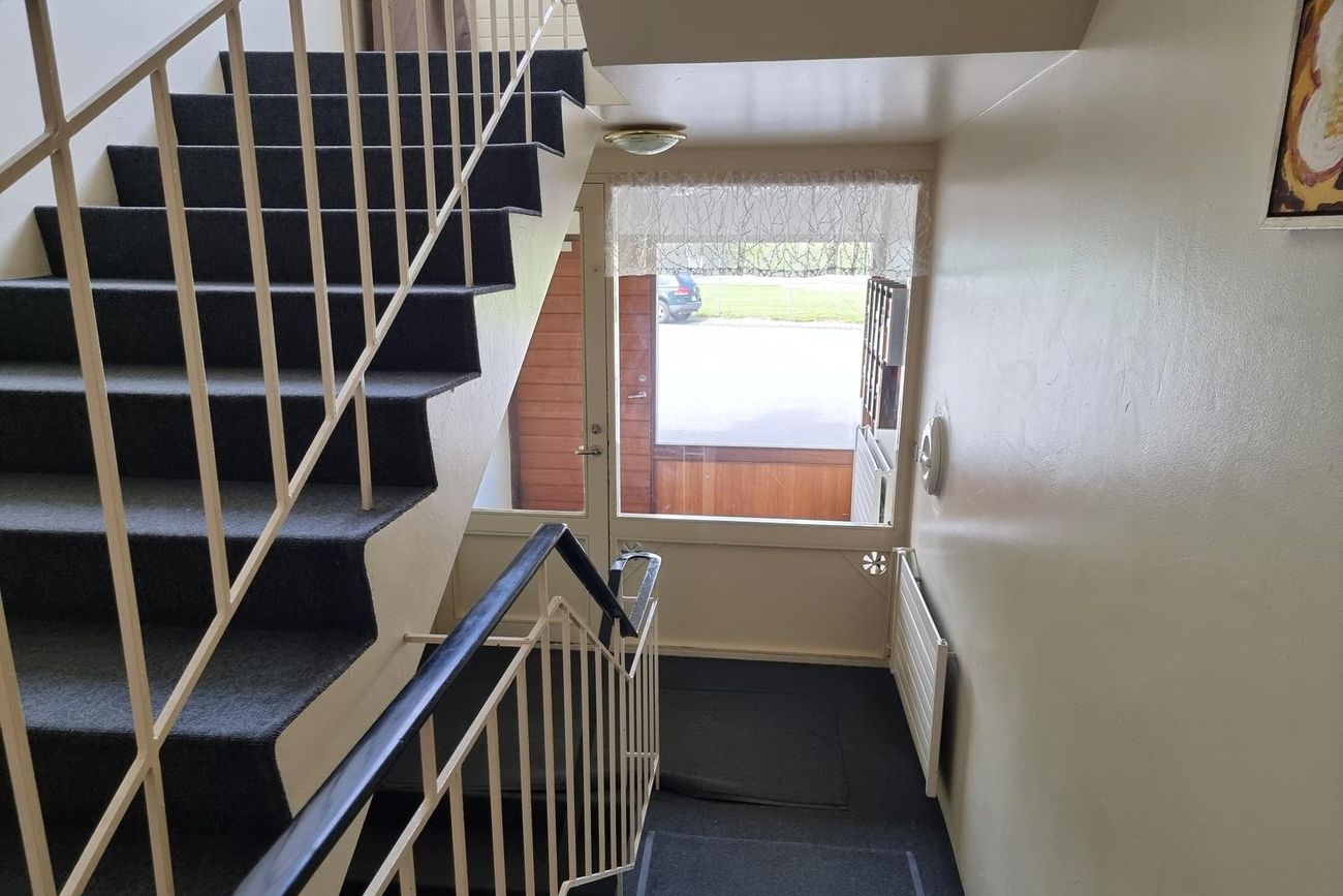 Anddyri er flísalagt og teppalagður stigagangur í sameign. Úr holi er gengið í tvö herbergi, eldhús, baðherbergi og stofu.