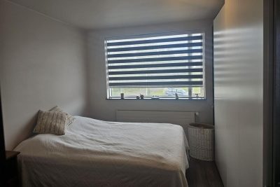 Svefnherbergin eru bæði með nýlegum fataskápum.