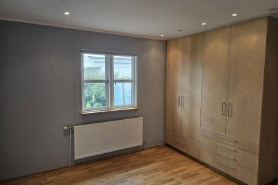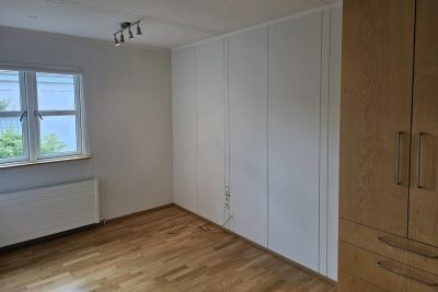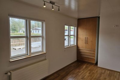 Svefnherbergi eru með parket á gólfi og skápum. Gólfhiti í hluta hjónaherbergis.