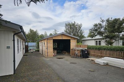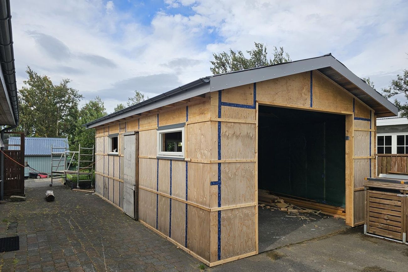 Bílskúr er í byggingu og verður honum skilað full frágengnum með rafdrifinni innaksturshurð, rafmagni og vatni.