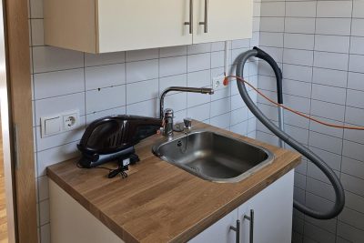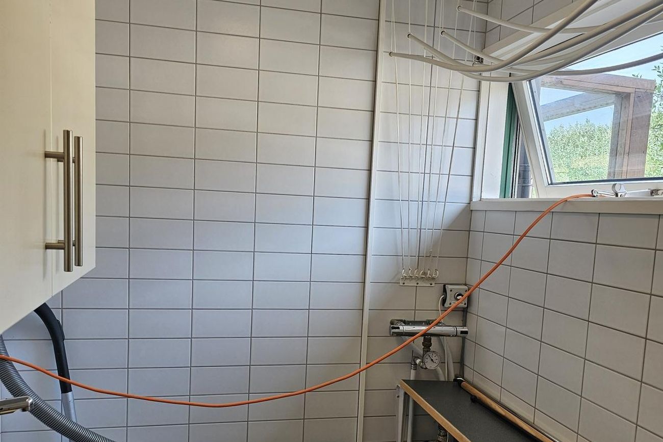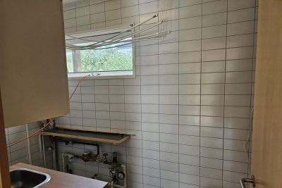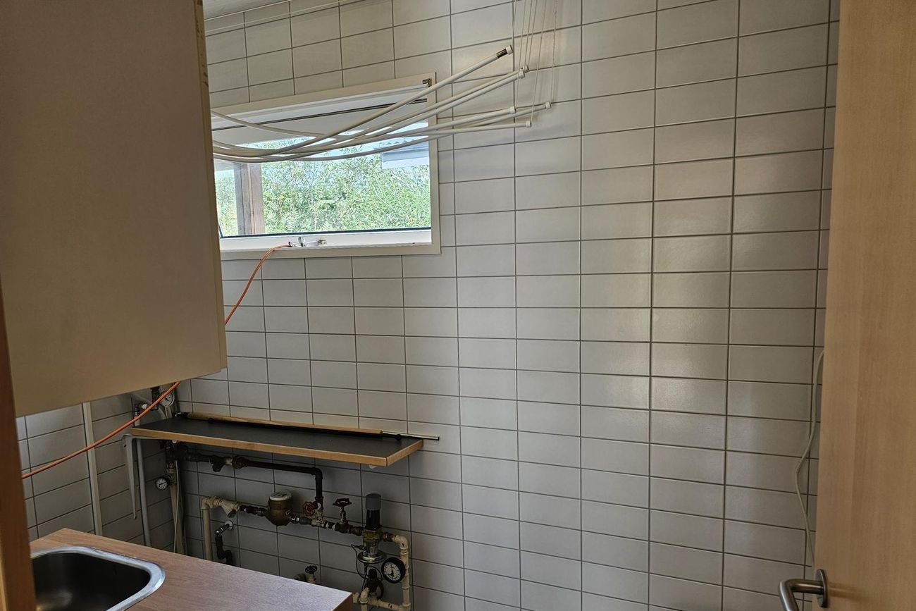 Þvottahús er flísalagt í hólf og gólf með lítilli innréttingu.