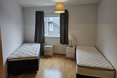 Svefnherbergi: Parket á gólfum, fataskápar í báðum herbergjum.