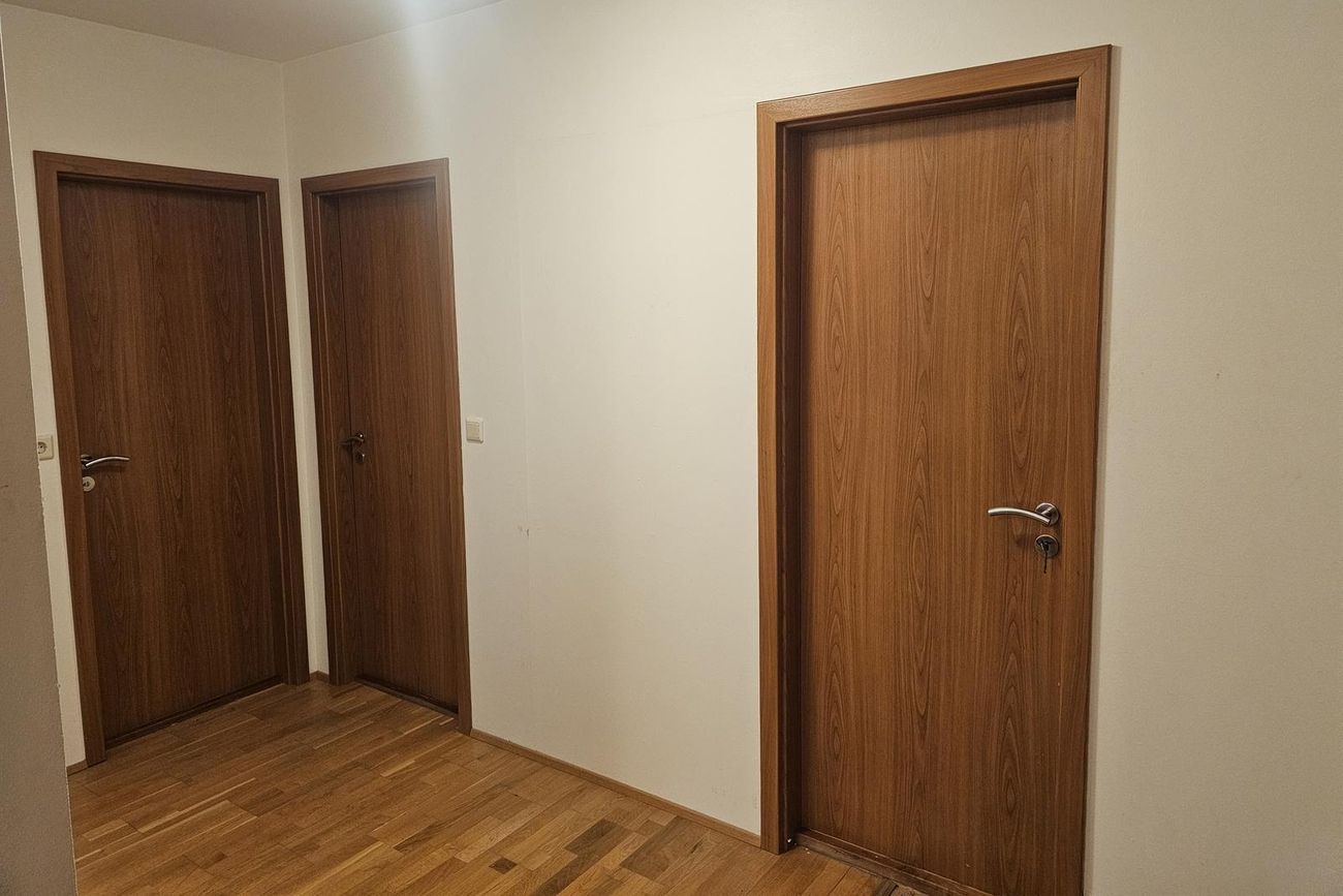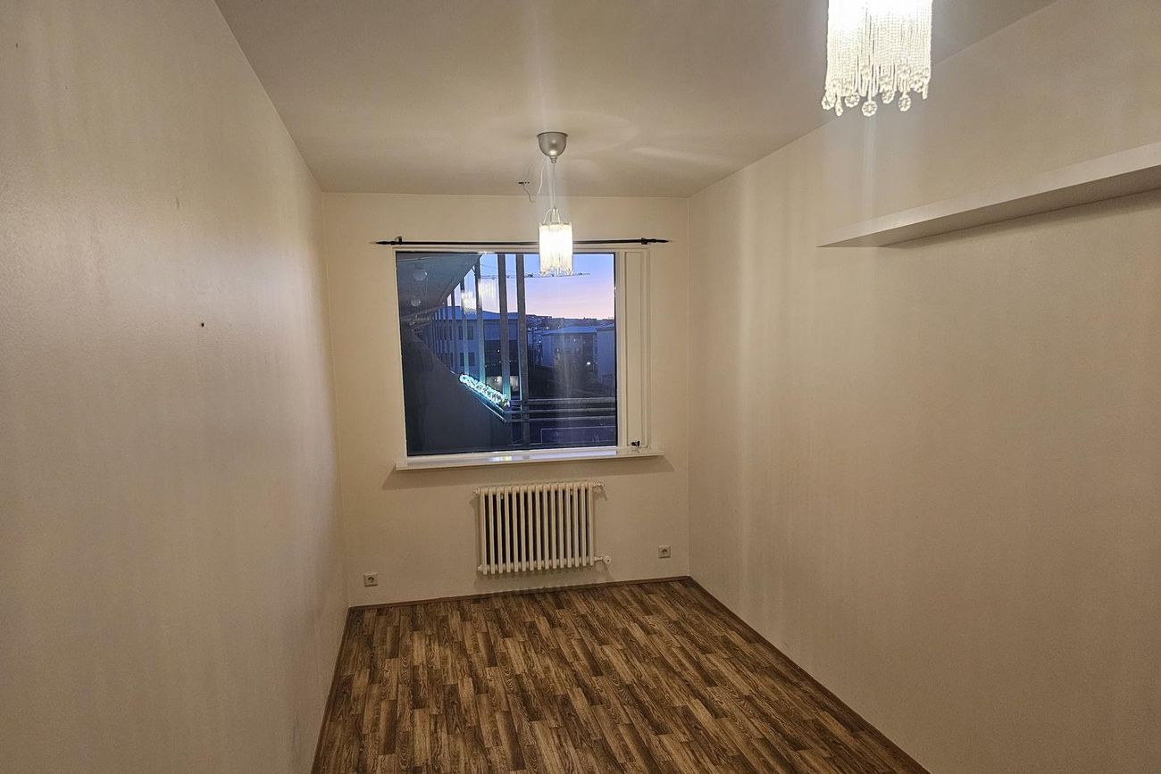 Íbúðin skiptist í anddyri, eldhús, þrjú svefnherbergi, baðherbergi og stofu. Parket er á öllum gólfum fyrir utan flísar á anddyri og baðherbergi.