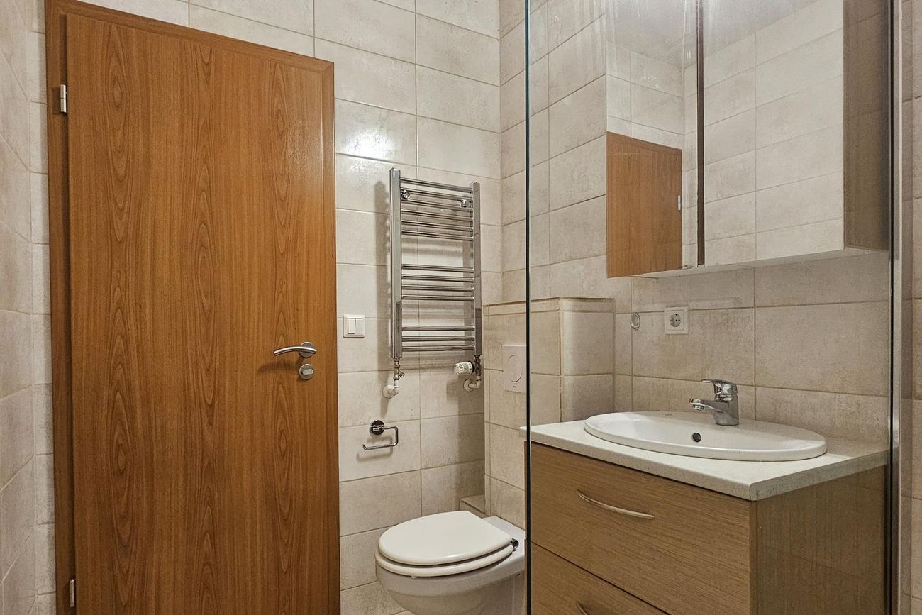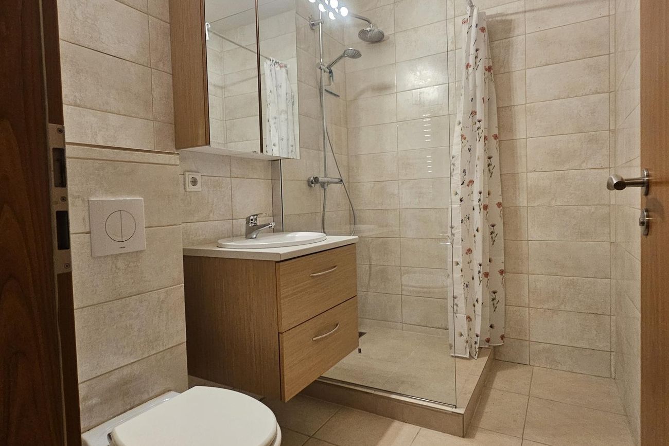 Baðherbergi: Flísalagt í hólf og gólf. Góð innrétting, speglaskápur. Flísalögð sturta með sturtugleri, vegghengt salerni og handklæðaofn.