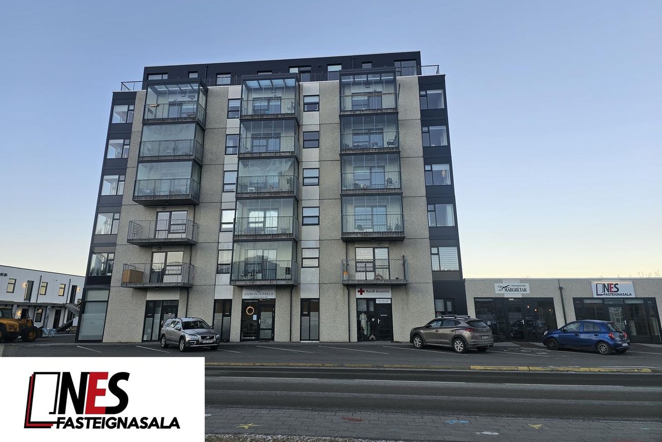 Um er að ræða 2ja herbergja íbúð fyrir 50 ára og eldri á 6. hæð í 7 hæða lyftuhúsi, merkt 0605 sem byggt var árið 2018. Íbúðin er 57,2 fm að stærð skv. skráningu FMR. Þar af er sér geymsla í kjallara sem skráð er 6,2 fm. Svalir eru 6.3 fm mót suðri með svalalokun.