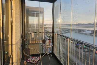 Íbúðin er mjög smekkleg og vel um gengin. Skipt hefur verið um alla glugga í íbúðnni vegna gallamála. Vinildúkur er á öllum gólfum utan votrýmis en nýtt parket fylgir með á alrými og svefnherbergi.
