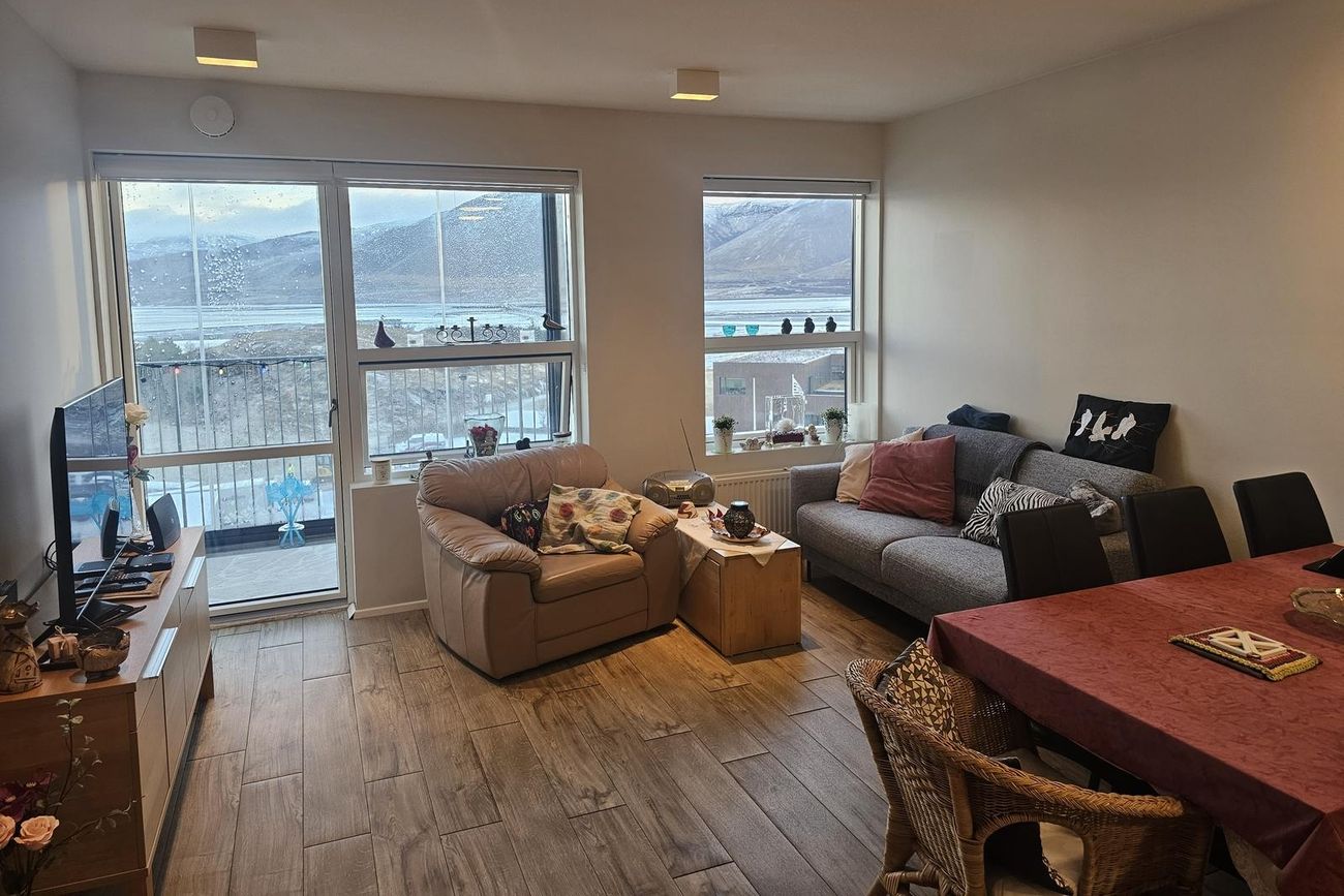 Stofa er björt og þaðan er gegnt er út á suðursvalir með svalalokun. Mikið útsýni