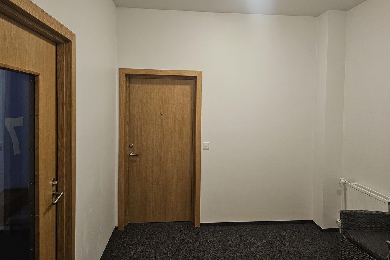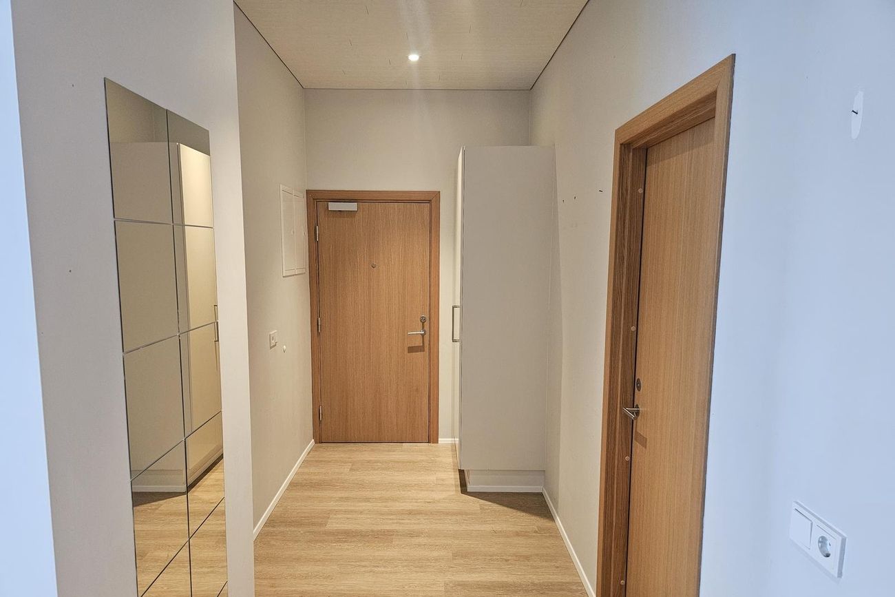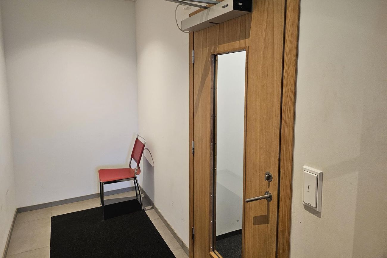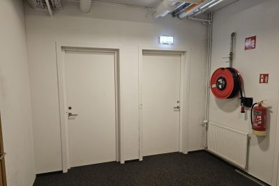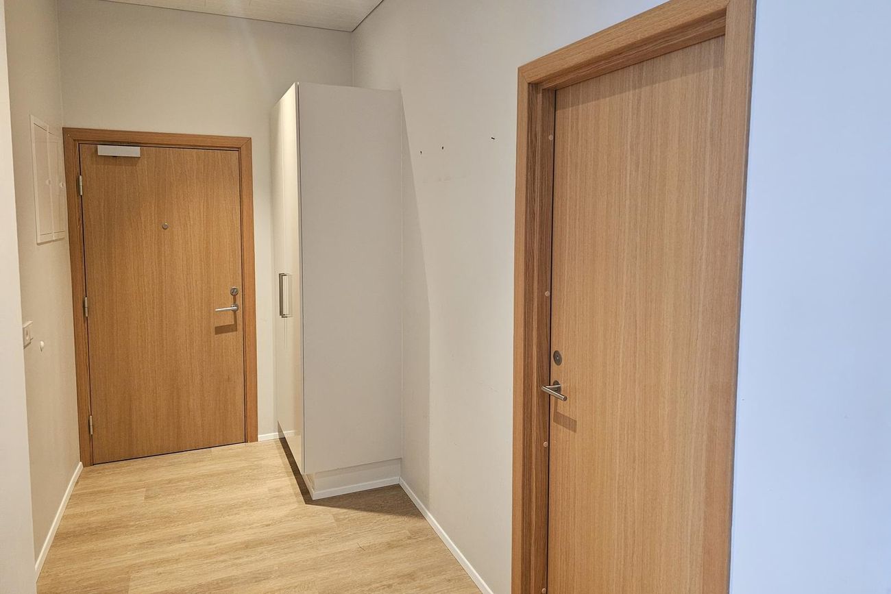 Forstofa með fataskáp.