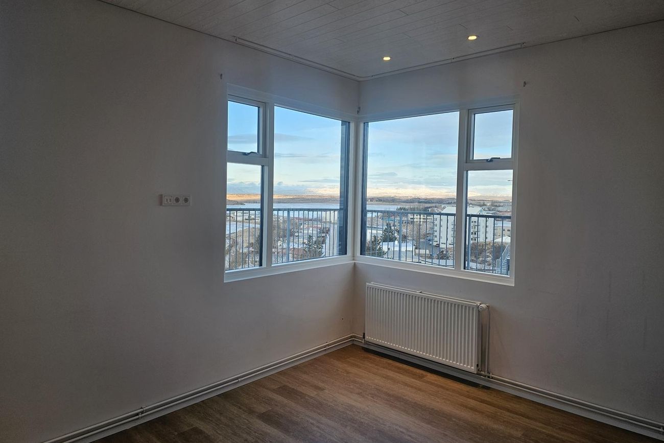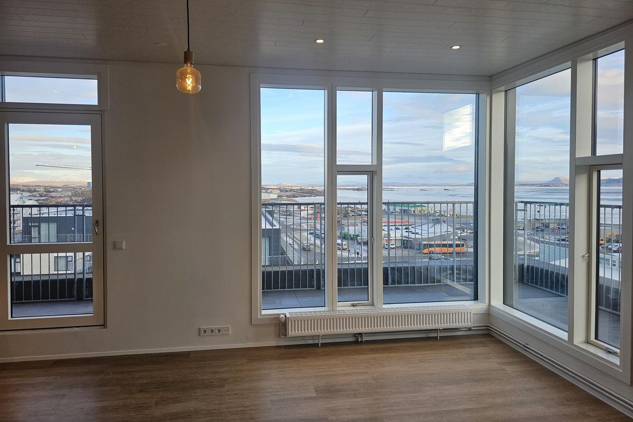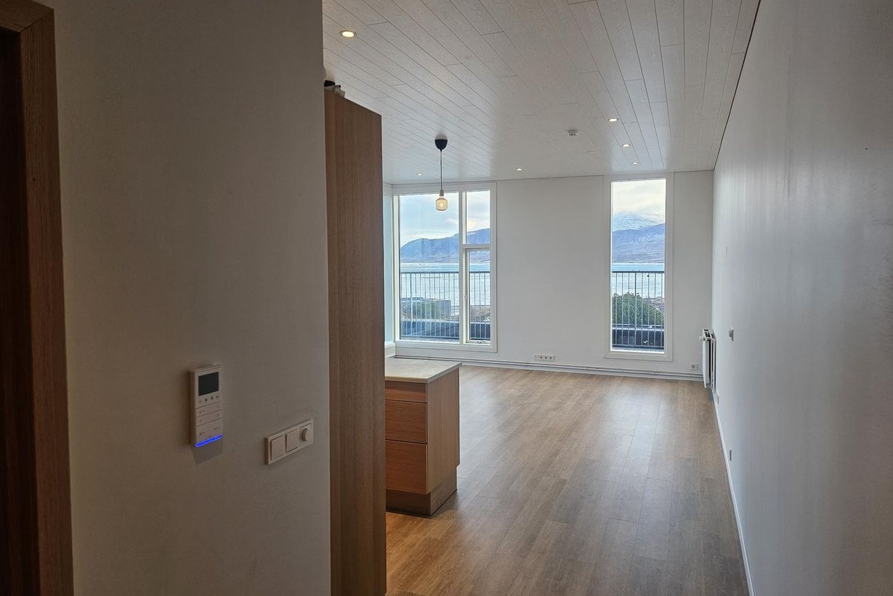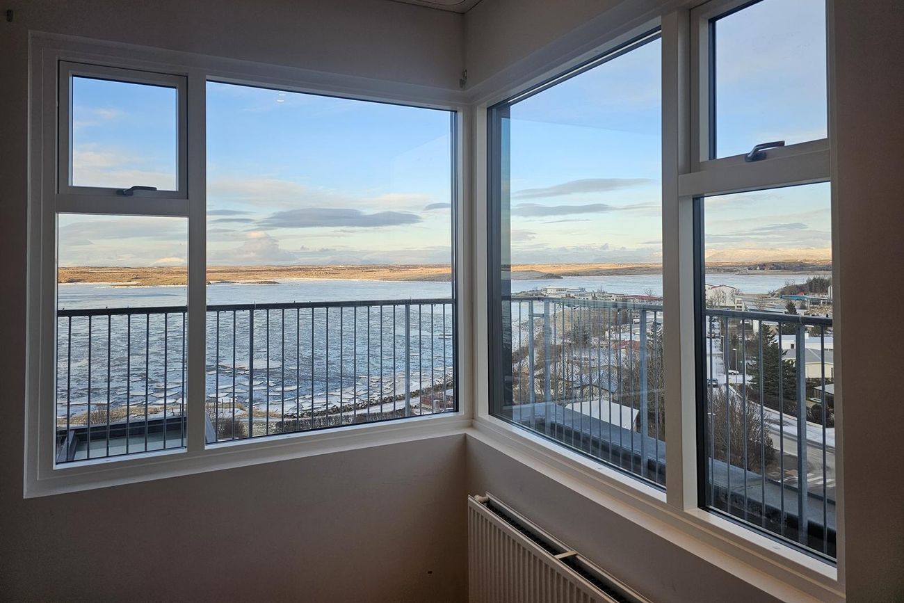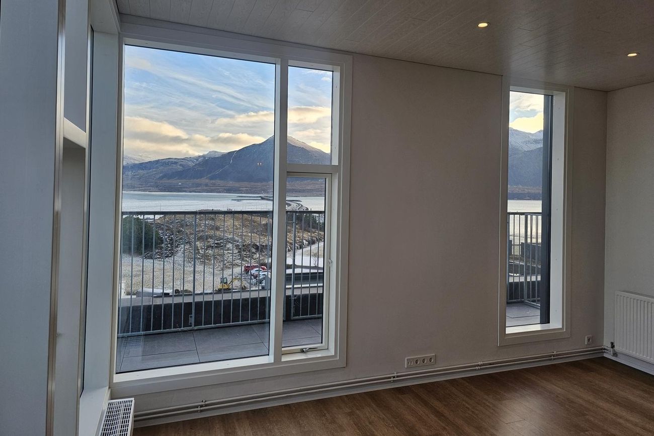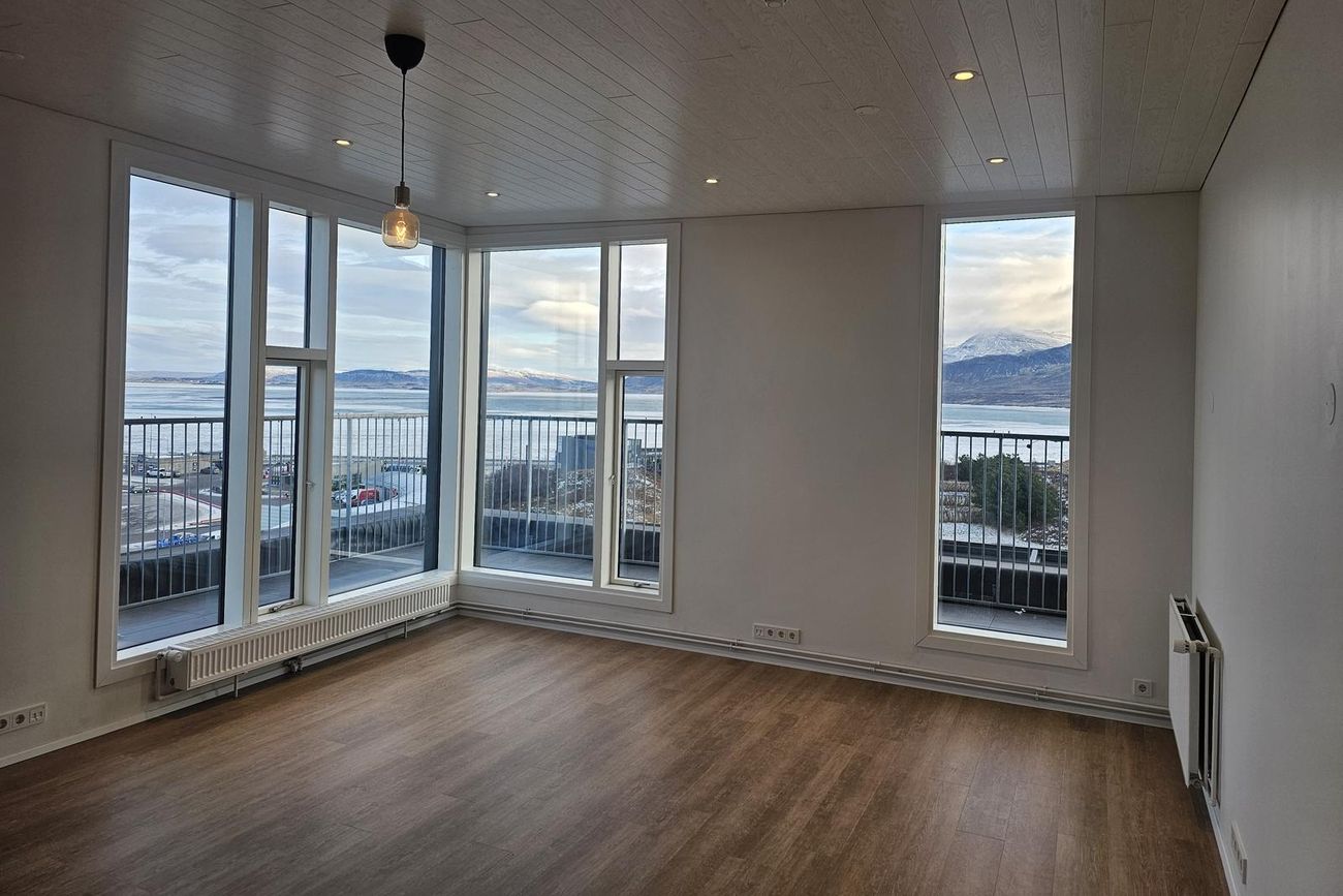 Stofa er björt og þaðan er gegnt er út á svalir. Mikið útsýni.