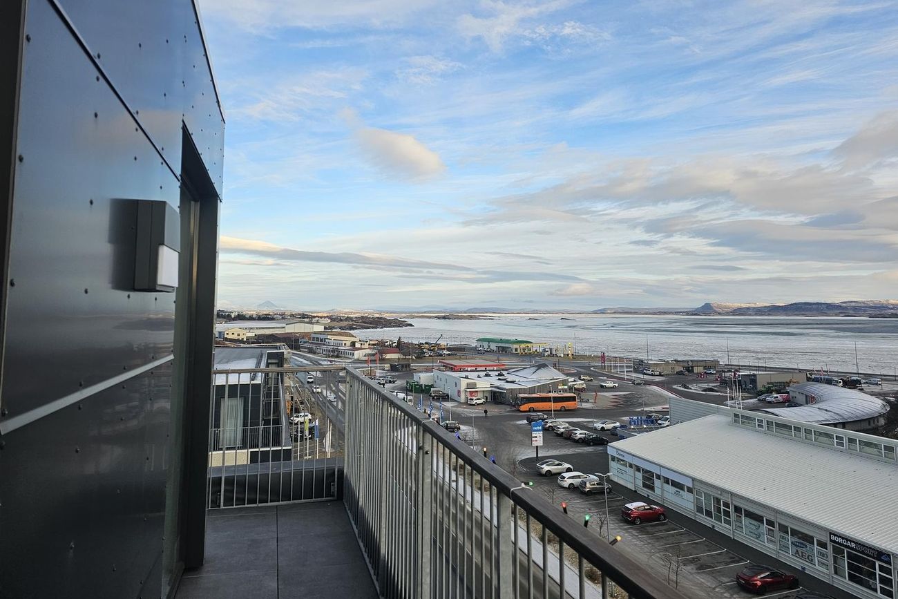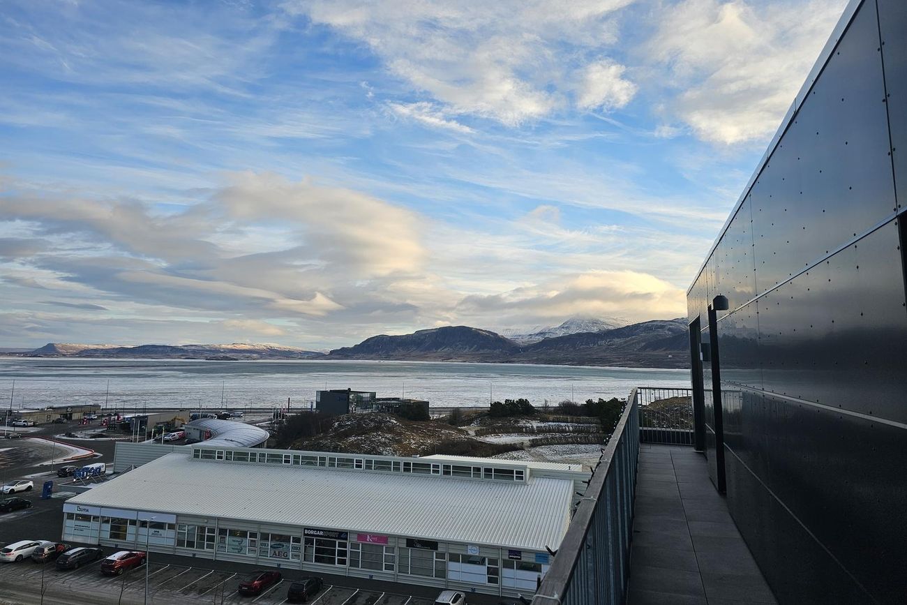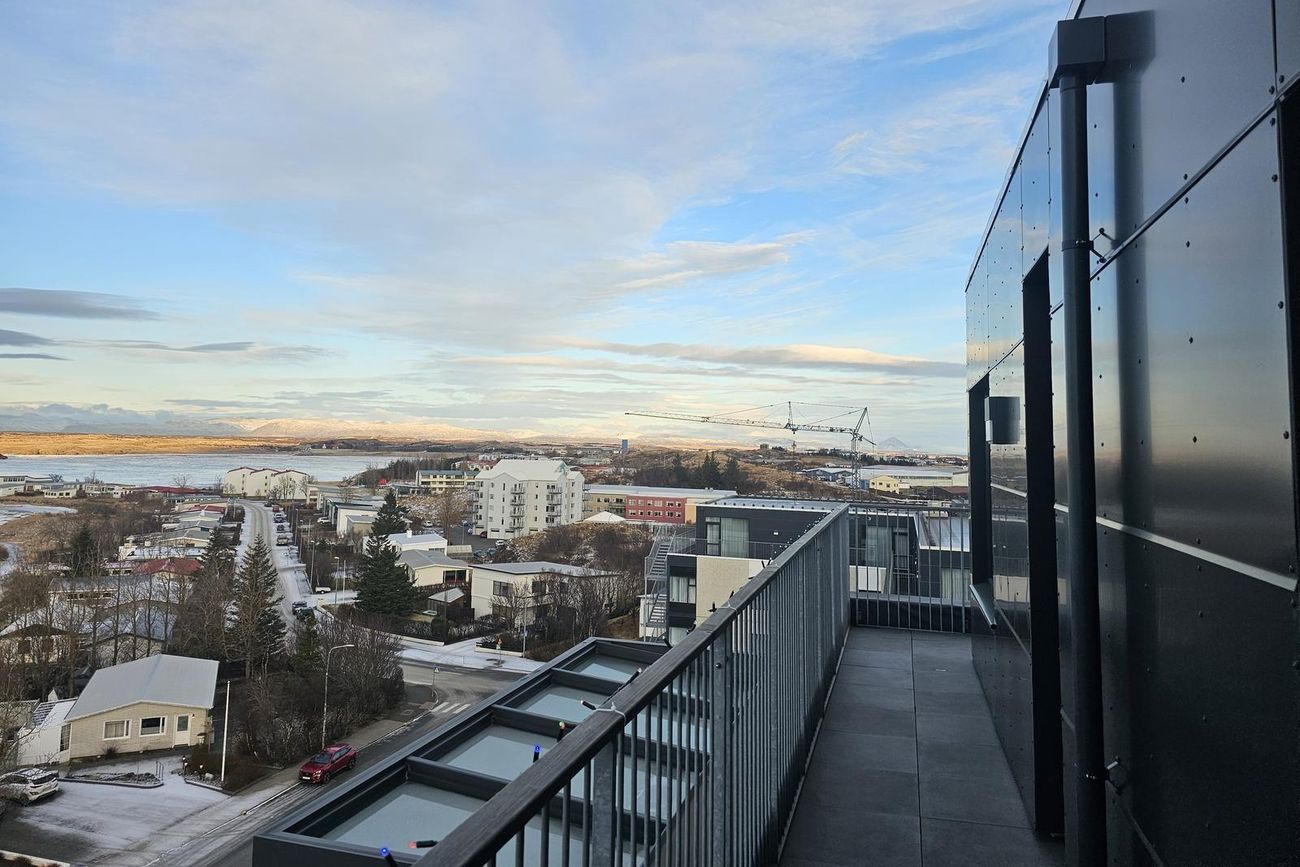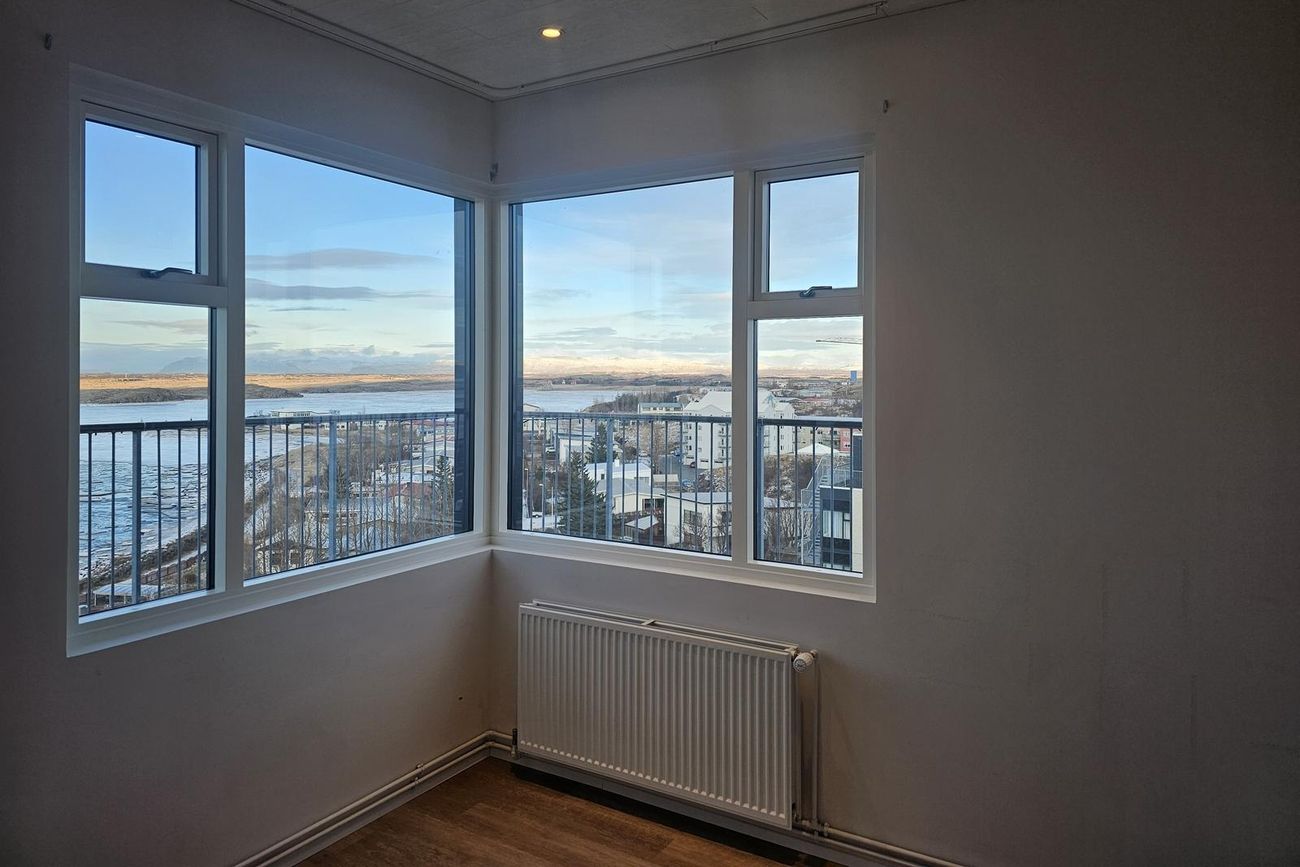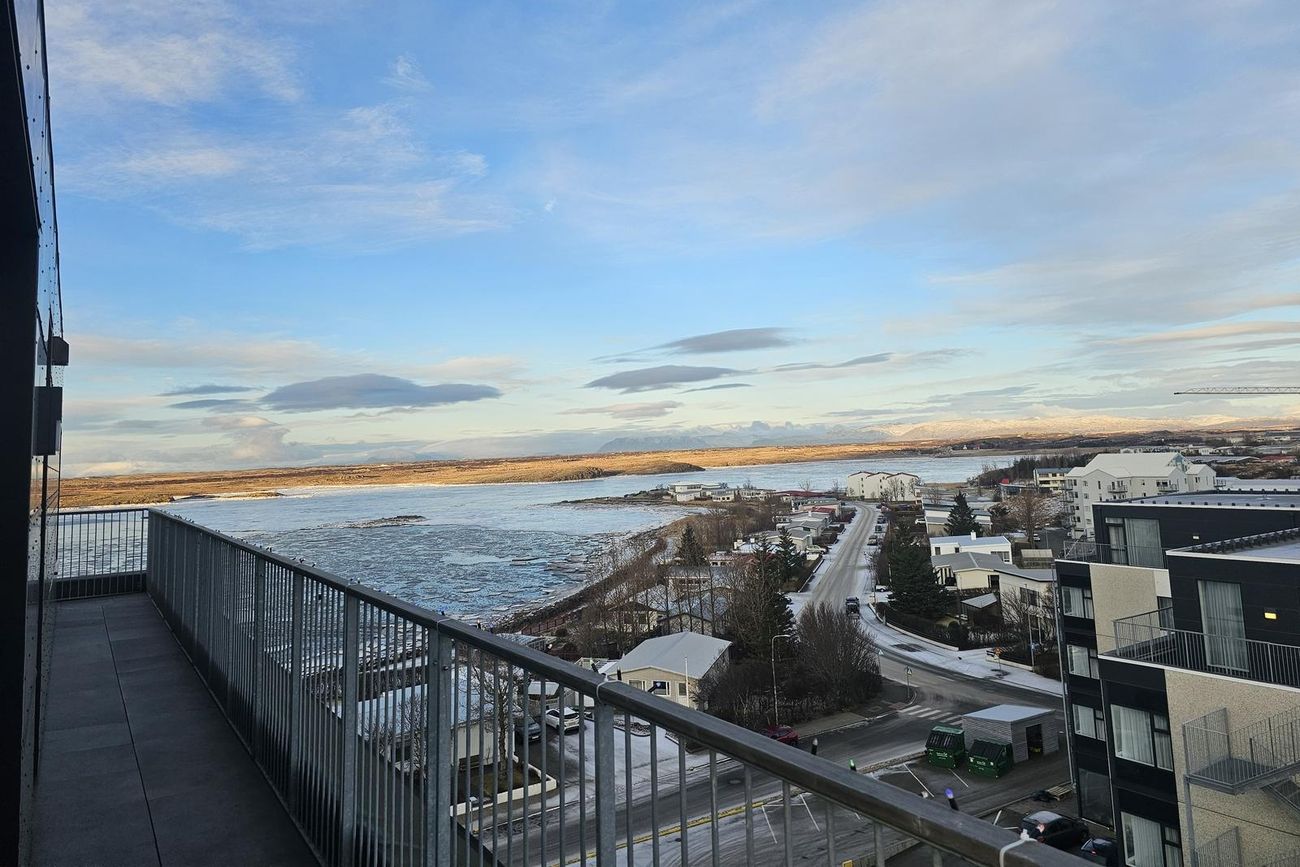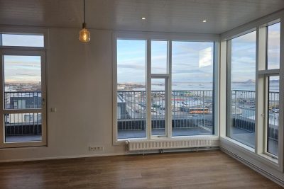 Stofa er björt og þaðan er gegnt er út á svalir. Mikið útsýni.