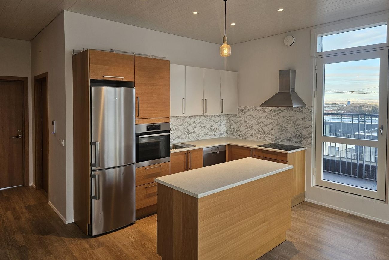 Eldhús með smekklegri innréttingu og góðum AEG tækjum.