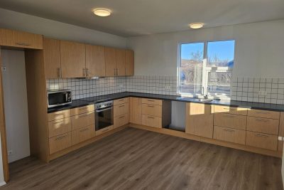 Eldhús: Parket á gólfi, innrétting eik. Helluborð og bakarofn. Stæði í innréttingu fyrir uppþvottavél og ísskáp