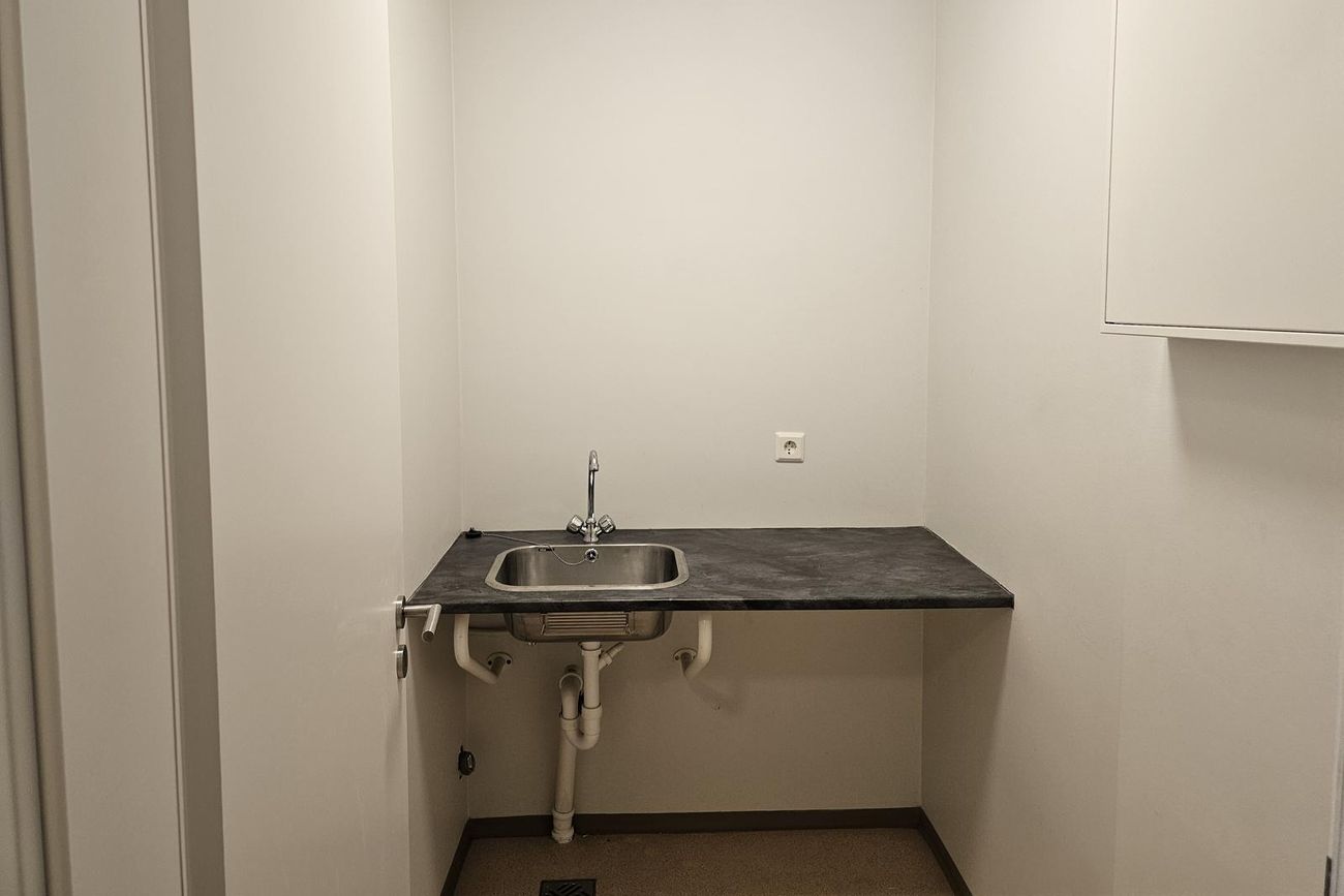 Þvottahús: Dúkur á gólfi, vaskur í borði.