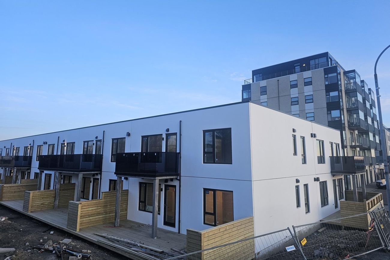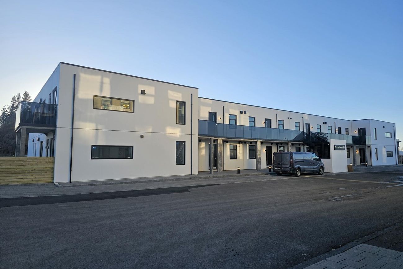 Um er að ræða vandaða 2ja herbergja íbúð á efri hæð í fallegri nýbyggingu sem er steinsteypt fjölbýlishús með 16 íbúðum á 2 hæðum. Íbúðin er 54,3 fm að stærð samkvæmt skráningu HMS. Húsið er byggt úr forsteyptum einingum og eru svalir á efri hæðum en sólpallar fylgja íbúðum á neðri hæðinni. Íbúðin er endaíbúð og er forstofa sameiginleg með íbúð 202. Íbúðin skilast fullbúin með innréttingum og gólfefnum með lokaúttekt á byggingarstigi 4. Gólfhiti er í íbúðum á neðri hæð en ofnar í íbúðum á efri hæð.