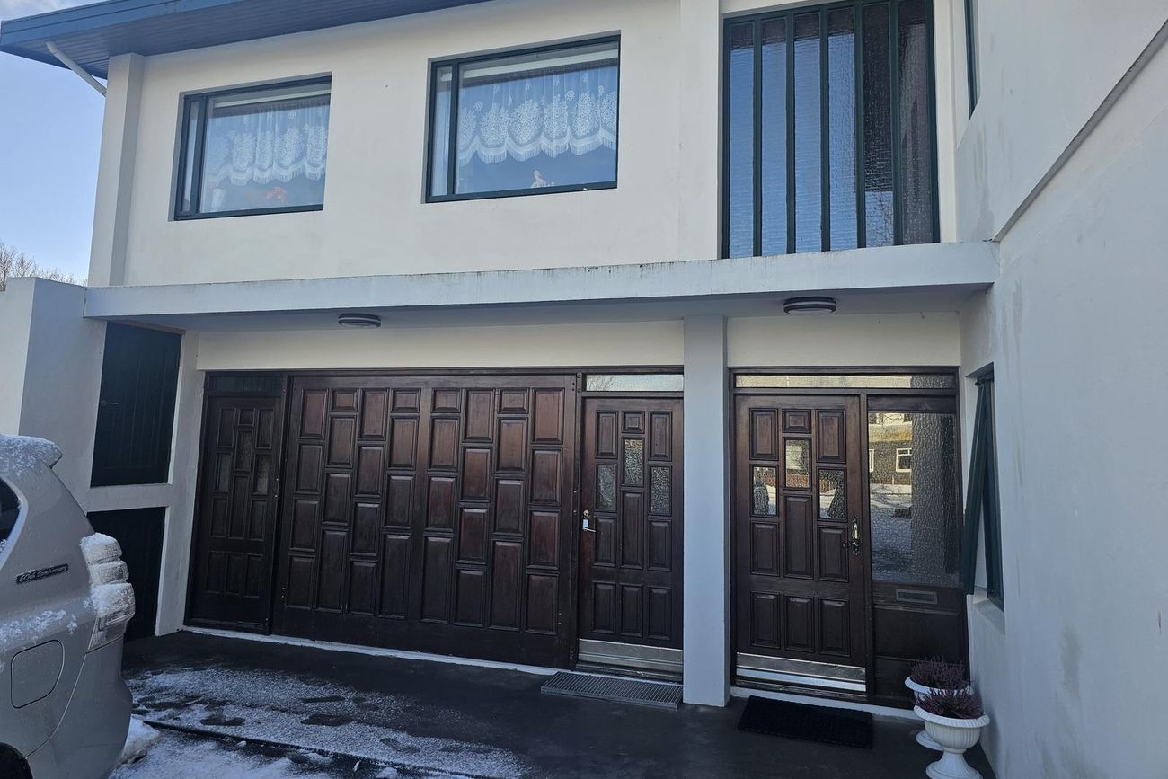 Um er að ræða mjög vel staðsett og rúmgott einbýlishús með aukaíbúð á sér fastanúmeri. Húsið er steinsteypt og á tveimur hæðum með innbyggðum bílskúr, og er aðalíbúð með íbúðarherbergi yfir bílskúr 247,20 fm að stærð og séríbúðin 71,9, fm, alls  319,10 fm skv. skráningu HMS.