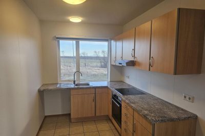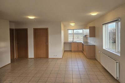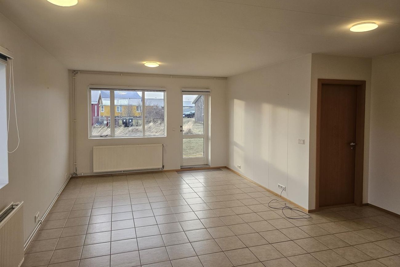 Gengið er í forstofu. Þar innaf er alrými sem samanstendur af eldhúsi og stofu. Úr alrými er gengið í 2 svefnherbergi og baðherbergi. Gengt er úr stofu út á lóðina.